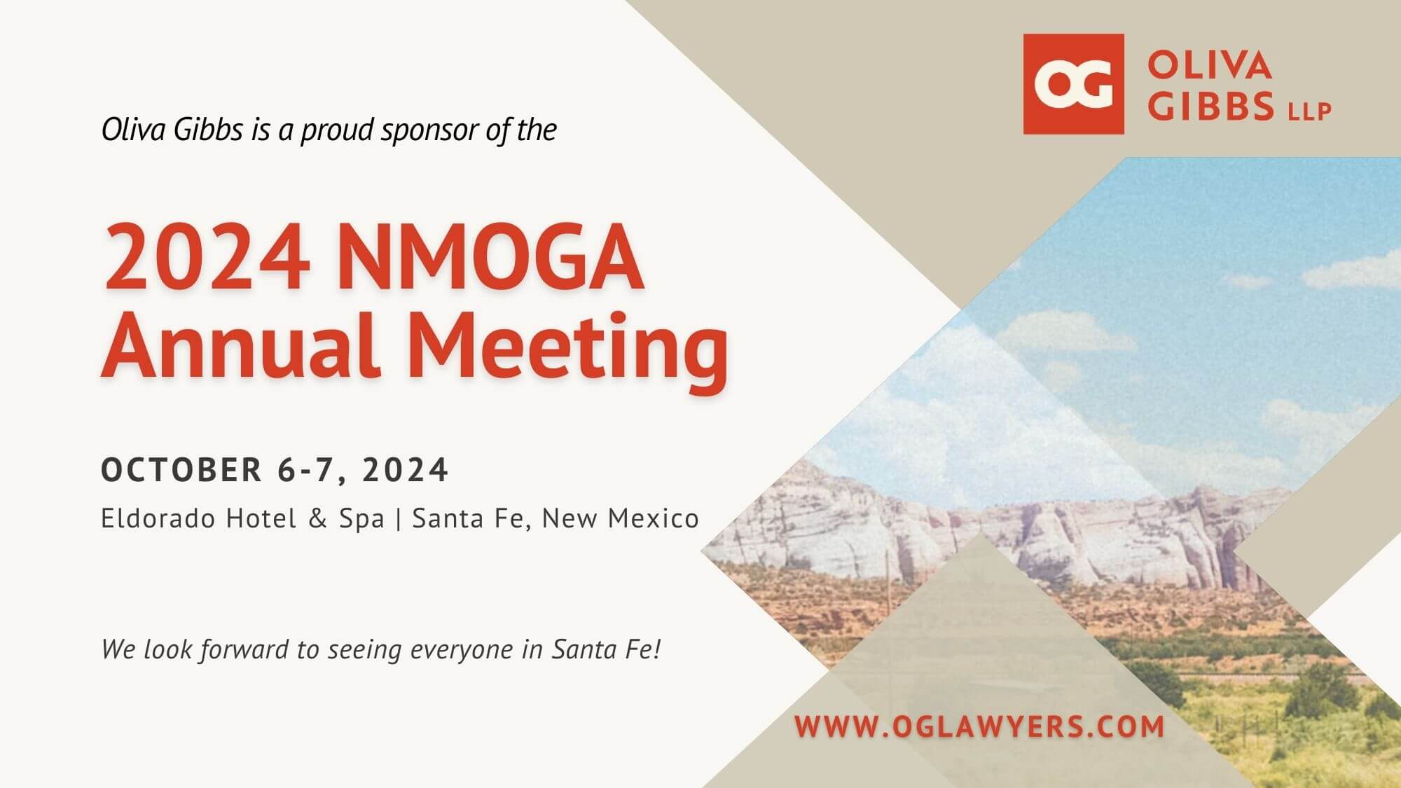 Join Oliva Gibbs at the 2024 NMOGA Annual Meeting Date: October 6-7, 2024 Location: Santa Fe, New Mexico Read More »